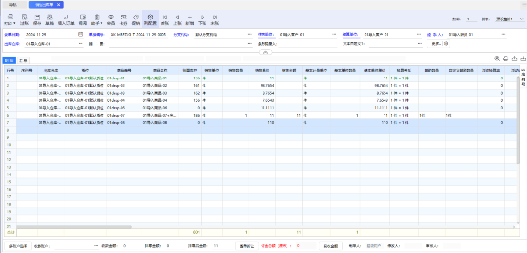 客户在查询报表或单据时,若需导出特定列数据(如商品名称或毛利)而无需修改打印模板,可直接使用"整列复制"功能。同样,在录单过程中如需快速录入部分商品信息,可通过"整列粘贴"实现高效操作。