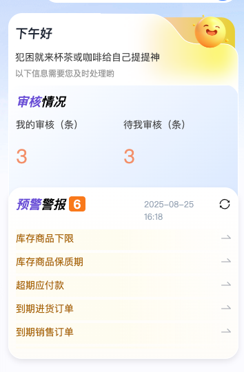 动态问候语功能,根据登录时间送上贴心问候,搭配个人工作台,再忙也有“云辉煌”关心您~