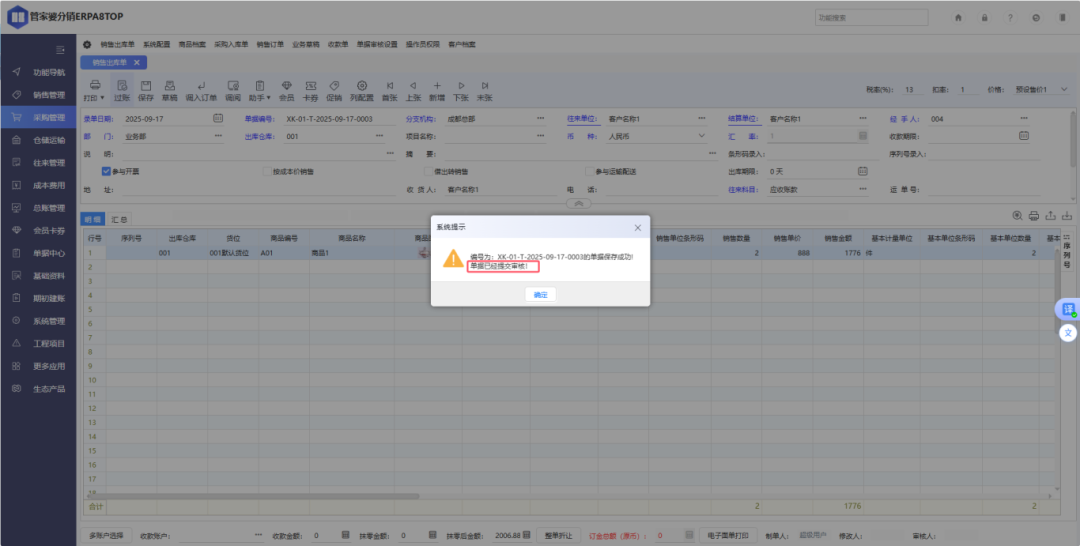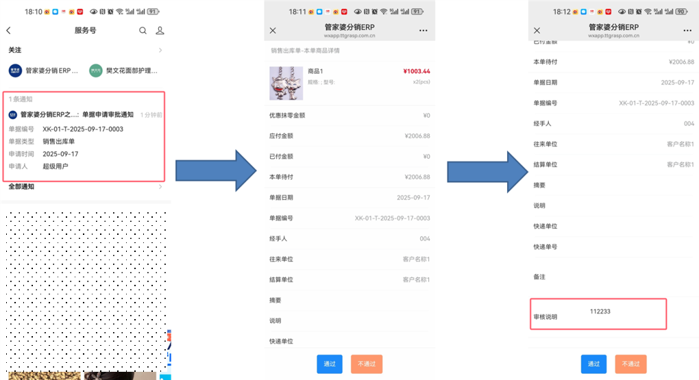 分销ERP V3&A8 V10.0.8实现了业务与沟通的无缝衔接。现在,系统在单据完成后,可自动向客户或内部职员微信推送消息,让企业与用户时刻保持高效链接。