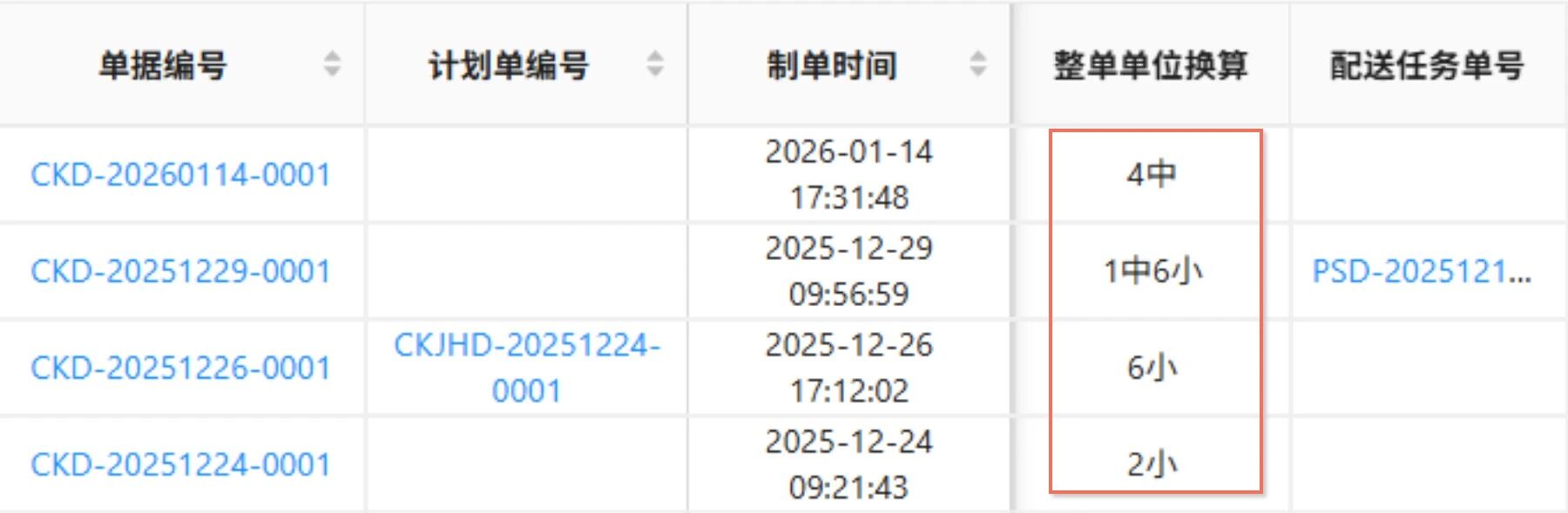 拣货单、出库单、配送运单等单据总数量支持换算三个单位的总数量,以几大几中几小的方式显示,便于各环节货物交接时按大中小核对数量