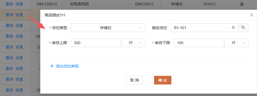 货位类型预警设置局部截图
