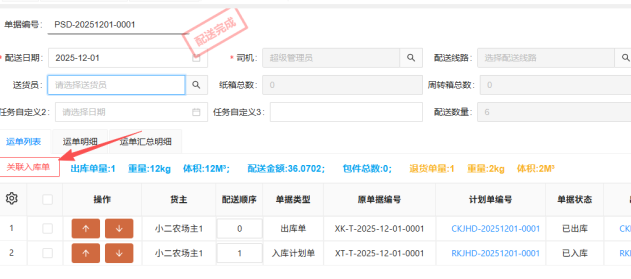 4.已完成配送任务,支持一键关联已入库状态入库单