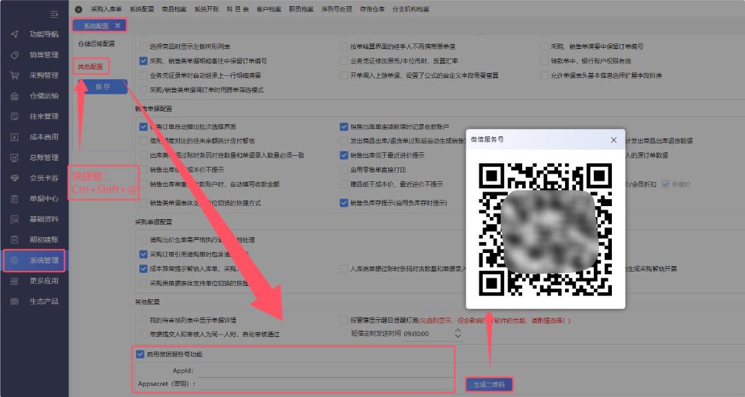 【系统管理—系统配置—其他配置】勾选【启用微信服务号功能】
